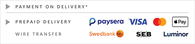 The same or next day delivery via bus parcel delivery service; Omniva terminal 1-2 business days; Lithuanian Post up to 5 business days